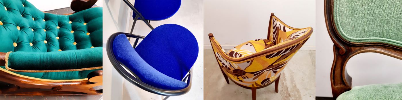 Un fauteuil chiné ou hérité peut devenir l’élément central de votre décoration. Avec un choix infini de tissus, textures et finitions, elle saura harmoniser vos sièges à votre intérieur. Relooking, modernisation ou simple mise en valeur : chaque projet est conçu pour refléter votre style.
