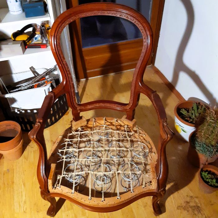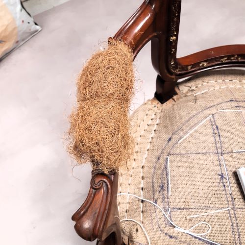 sangles jute, 10 ressorts de 14 cm, toile de jute, 2.5kg de crin végétal, crin animal lavé-réutilisé, toile blanche, ouate de polyester, toile jaconas, corde, ficelle à piquer