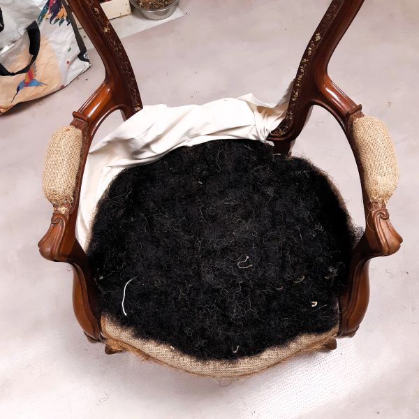 Dossier en bon état qui sera reposé en remplaçant simplement la partie en crin superficielle, pour un volume généreux et un meilleur accueil.
