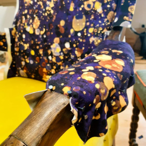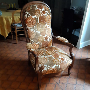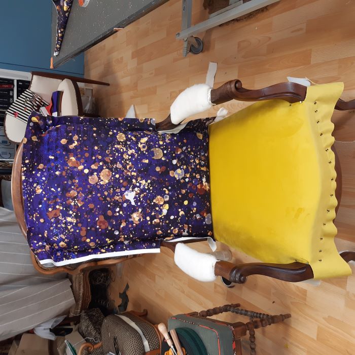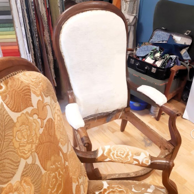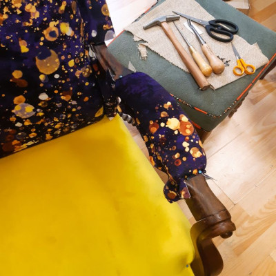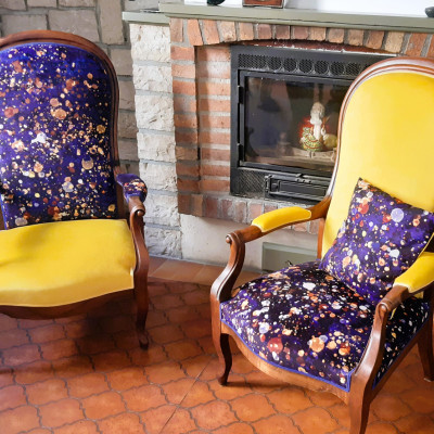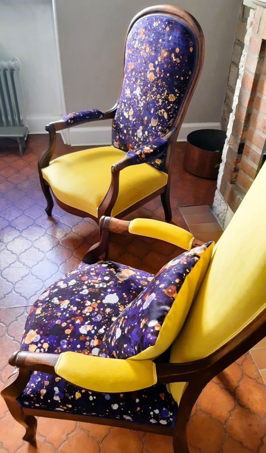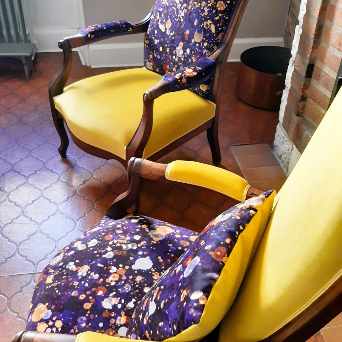 Pour cette restauration, la cliente a choisi deux tissus lumineux coordonnés :