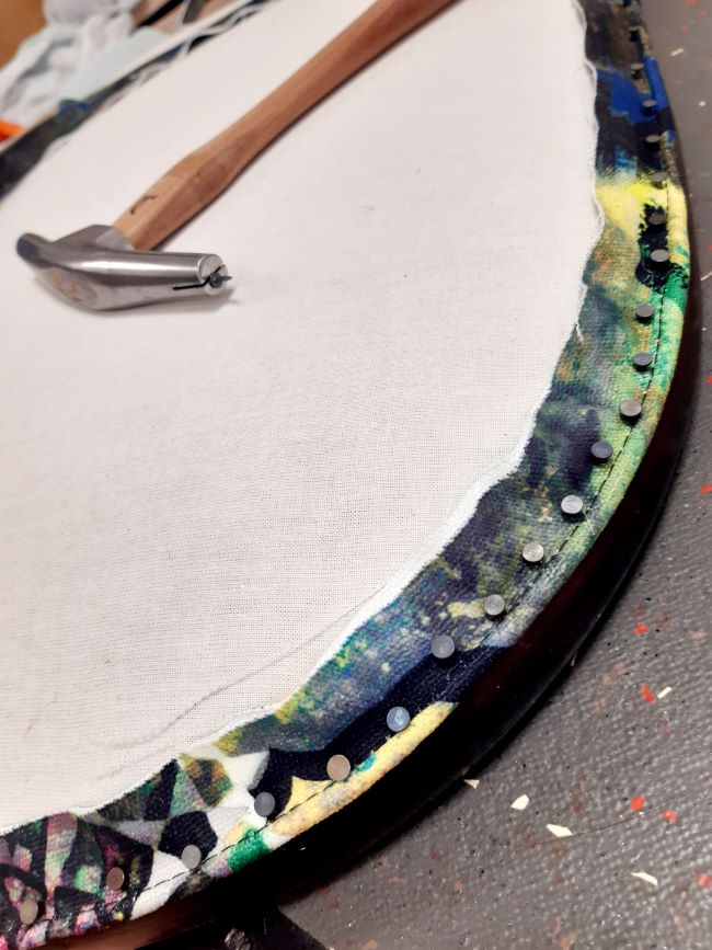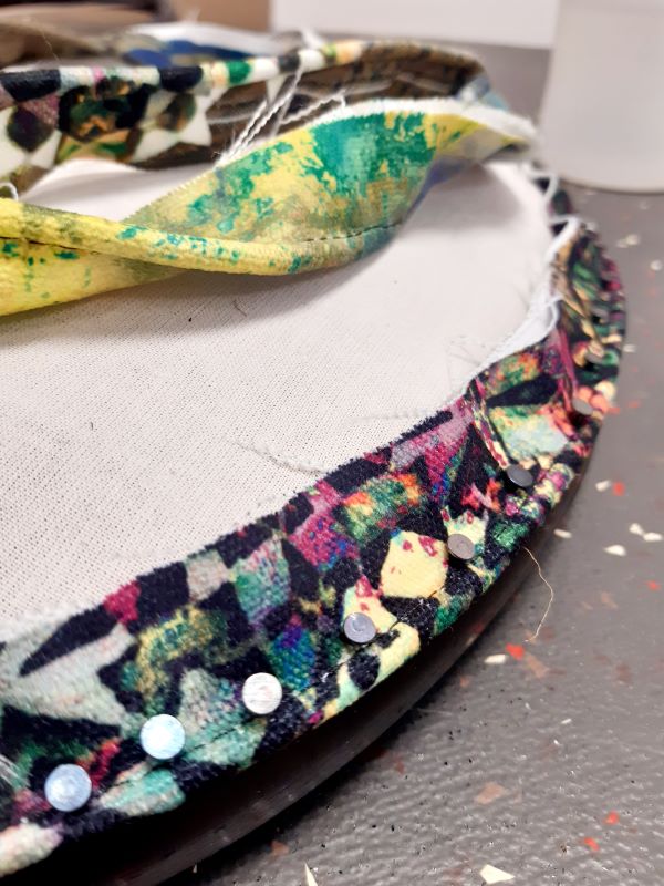 De la toile forte et toile blanche, de la ouate, de la mousse HR40, et puis colle, fil, corde, agraphes, etc!