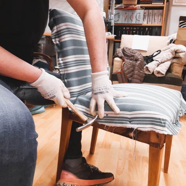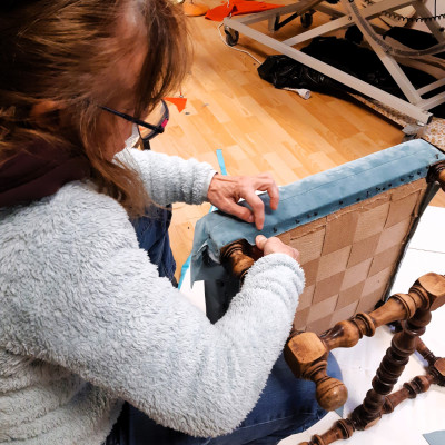 Je vous accueille dans mon atelier situé à Pont-de-Barret pour vous accompagner dans vos projets de réfection de fauteuils ou de création textile.