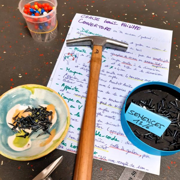 Vous pouvez revenir régulièrement, laisser vos pièces à l’atelier entre deux séances, et avancer sereinement sur des projets de réfection ou de décoration.